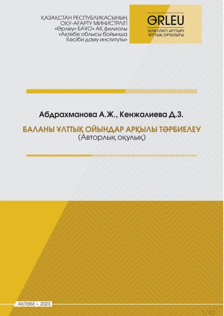 Мектепке дейінгі жастағы балаларды ұлттық ойындармен тәрбиелеп өсіруде ынталарын арттыру мақсатында көмекші құрал ретінде