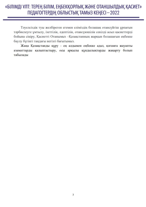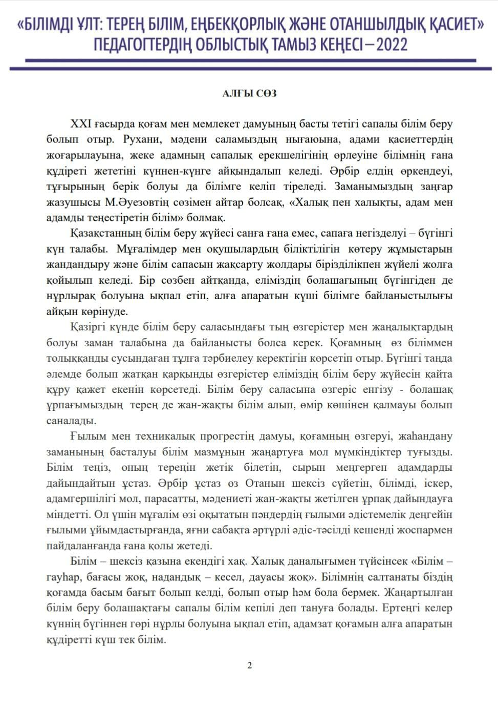 "Білімді ұлт: Терең білім, еңбекқорлық және отаншылдық қасиет" Педагогтердің облыстық тамыз кеңесі